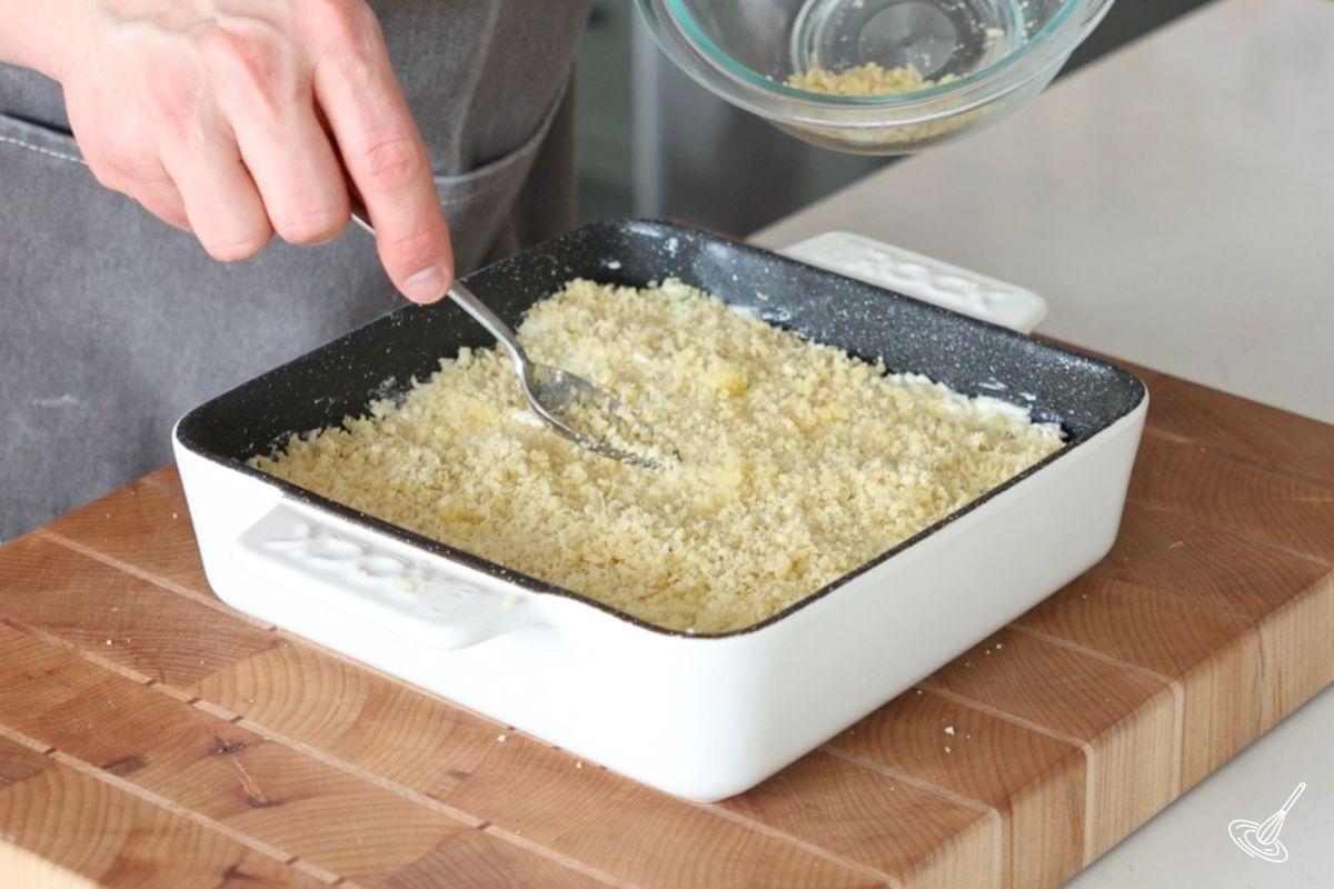 5. Make the topping by combining in a small bowl, the panko crumb, parmesan, and olive oil.