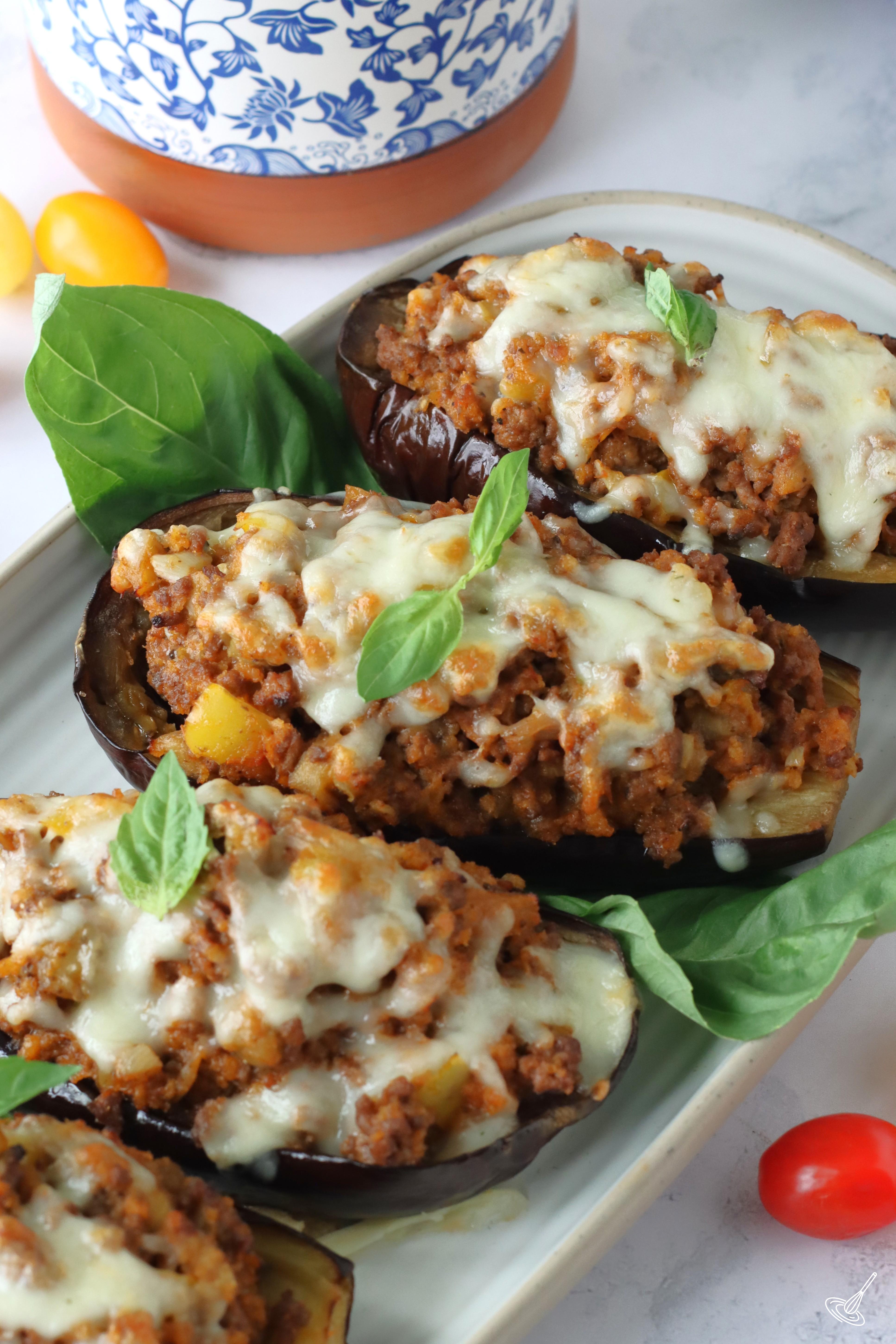Discover the bold flavors of southern Italy with these Calabrian Stuffed Eggplants. Roast tender eggplant halves until perfectly golden and soft. Fill them with a savory blend of ground beef, breadcrumbs, parmesan cheese, tomatoes, and garlic. Serve them as a satisfying main dish, with a salad and vegetables. Bring the warmth and spirit of Calabria straight to your table with every bite. Try my Aubergine Bolognaise for a similar tasting dish, as a one pan dish!