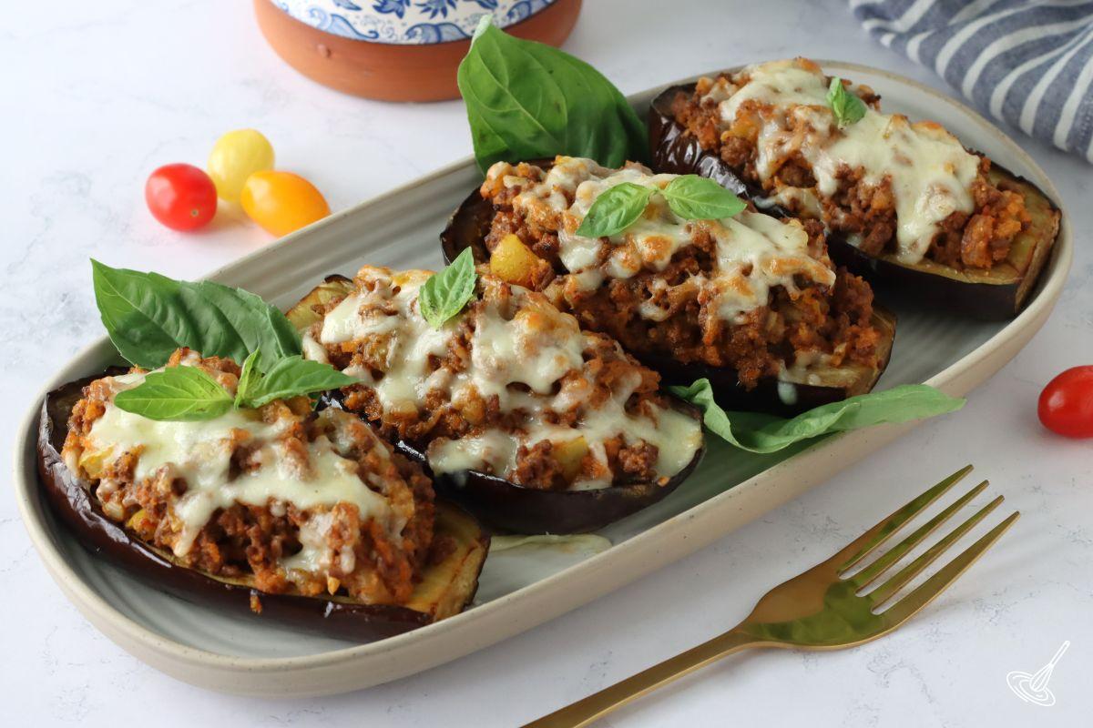 Discover the bold flavors of southern Italy with these Calabrian Stuffed Eggplants. Roast tender eggplant halves until perfectly golden and soft. Fill them with a savory blend of ground beef, breadcrumbs, parmesan cheese, tomatoes, and garlic. Serve them as a satisfying main dish, with a salad and vegetables. Bring the warmth and spirit of Calabria straight to your table with every bite. Try my Aubergine Bolognaise for a similar tasting dish, as a one pan dish!