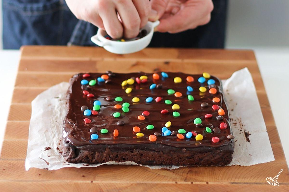 - Sprinkle on the candy coated chocolate chips over the fresh chocolate ganache.