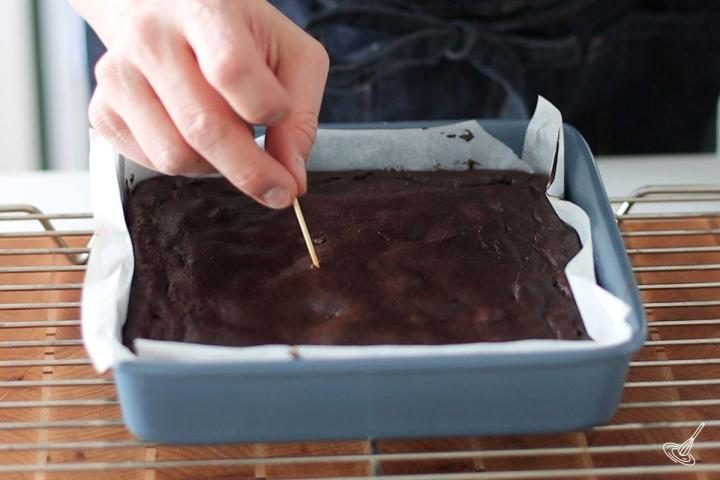 - Bake the Cottage Cheese Cosmic Brownies in the preheated 350F oven for 20 minutes or until a toothpick inserted comes out clean. Let the brownie cool down to room temperature before icing it.