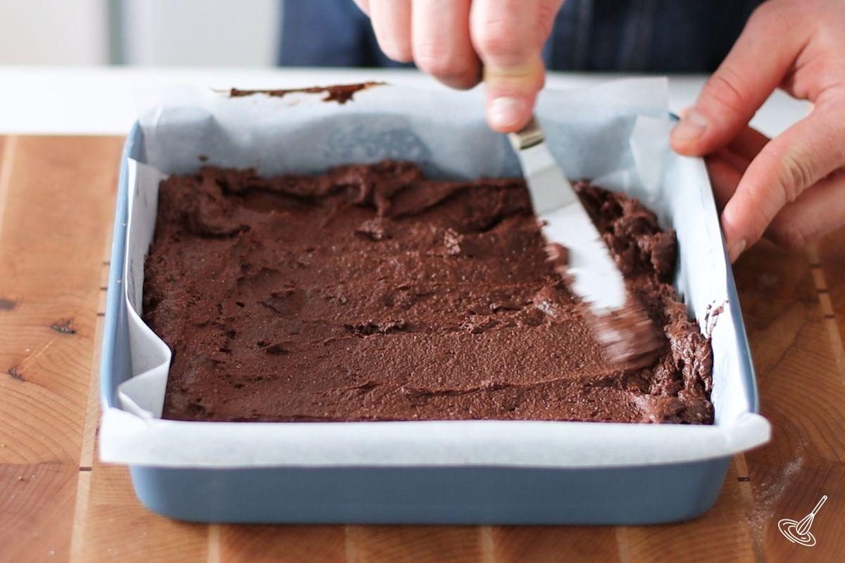 - Transfer the batter to the prepared baking tray and use the spatula to smooth it out, making sure that you get it in the corners.