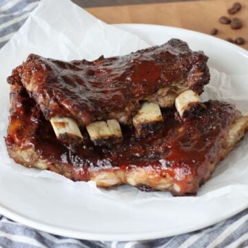 Serve these ribs with a side of my Bacon and Mushroom Pasta and/or my Grilled Radicchio Salad. Use your Dutch Oven for a more traditional purpose by making any of my filling soups. Try my Italian Meatball Soup, Chicken and Dumplings or even my Cozy Autumn Wild Rice Soup for filling and comforting soups.