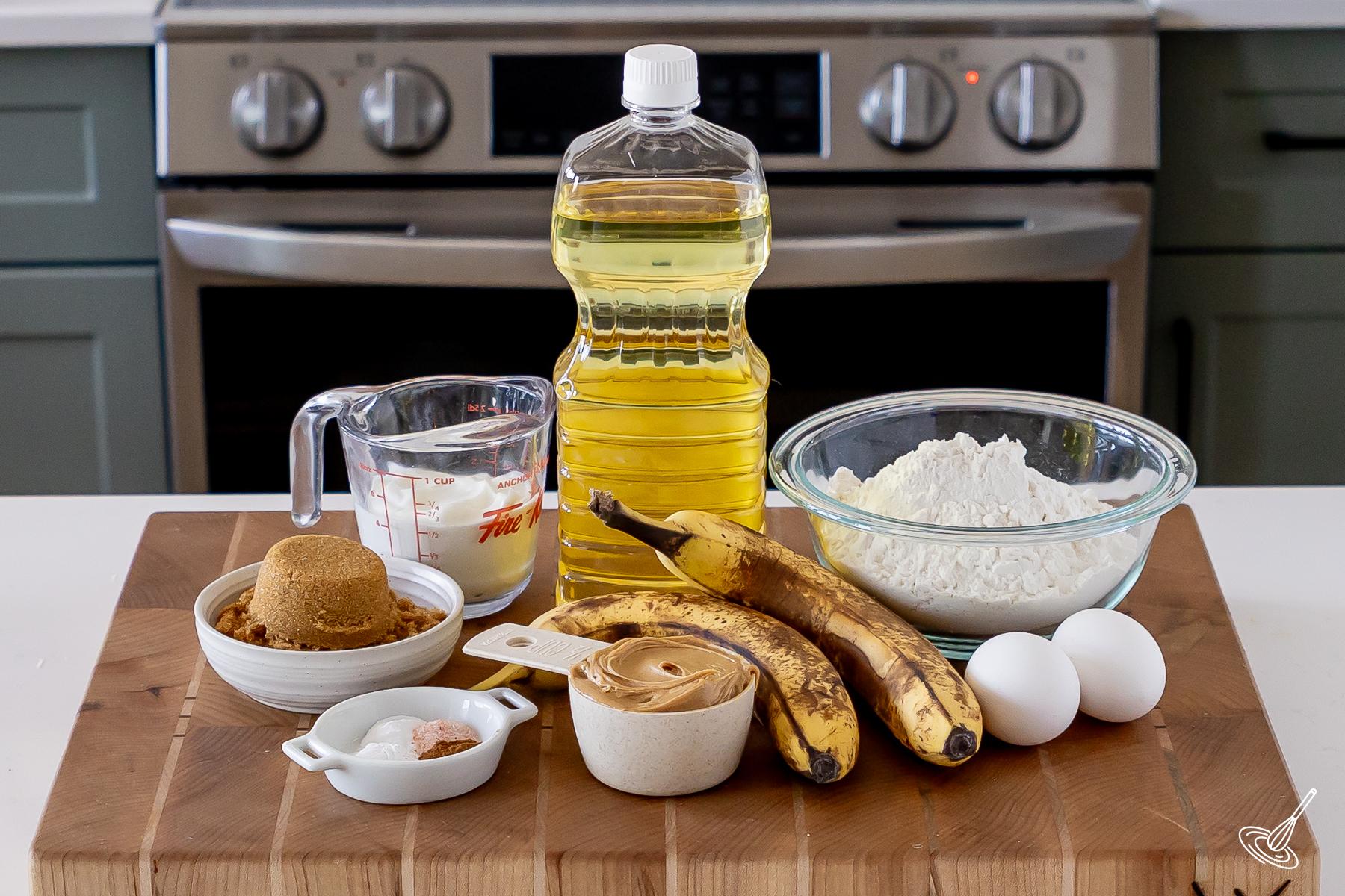 Vous trouverez ci-dessous la liste des ingrédients que j'ai utilisés pour réaliser ma recette de Muffins banane et beurre d’arachide