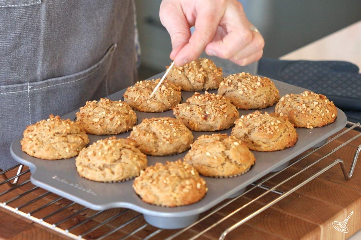- Répartissez la pâte uniformément dans les moules à muffins. Faites cuire au four de 18 à 22 minutes, jusqu'à ce qu'un cure-dent inséré au centre en ressorte propre.