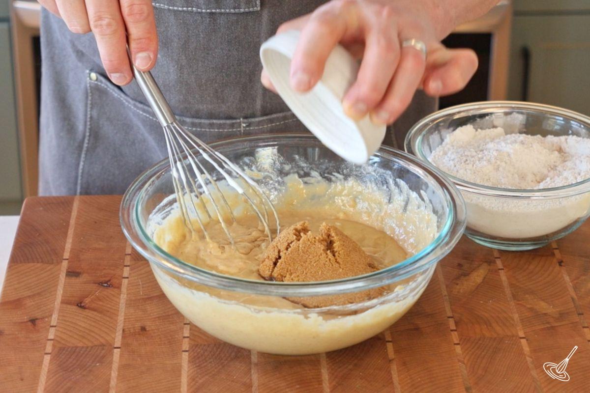 - Dans un grand bol, fouettez la farine, la levure chimique, le bicarbonate de soude, le sel et la cannelle.2 tasses Farine tout usage, 1 c. à thé Levure chimique, ½ c. à thé Bicarbonate de soude, ½ c. à thé Sel, ½ c. à thé Cannelle moulue