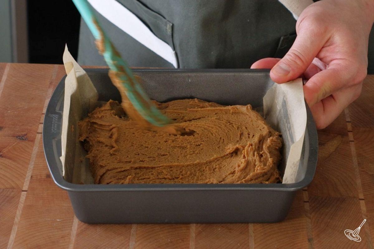 - Preheat the oven to 350F. Lightly coat an 8"x8" baking dish with non-stick spray and line the pan with parchment paper. Set aside.