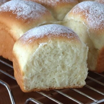 • Remove from the oven and let them cool for 5-10 minutes. Carefully remove them from the pan and place on a cooling rack, to prevent the buns from "sweating" and making sure the crust can crisp up.